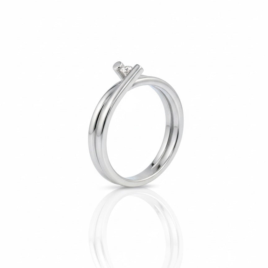 18ct White Gold Double Band Floating Solitaire Diamond Ring