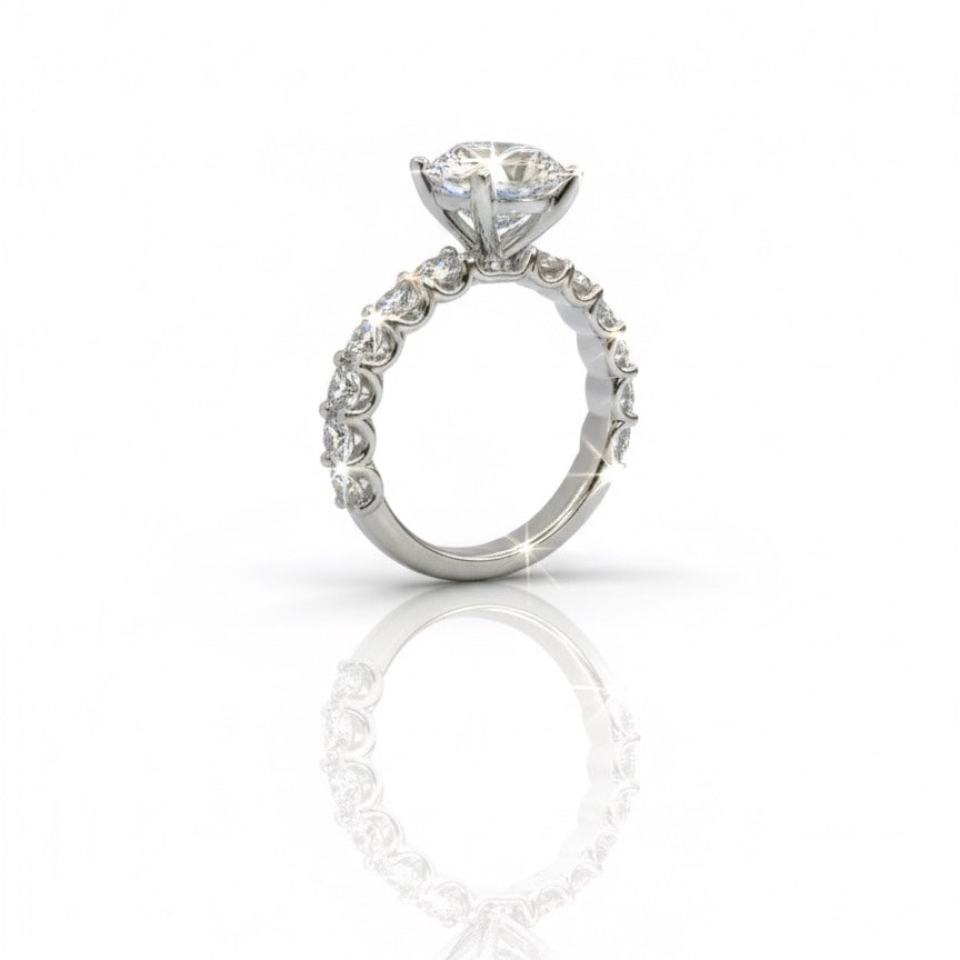 950 Platinum Round Brilliant Diamond With Diamond Shoulder Ring