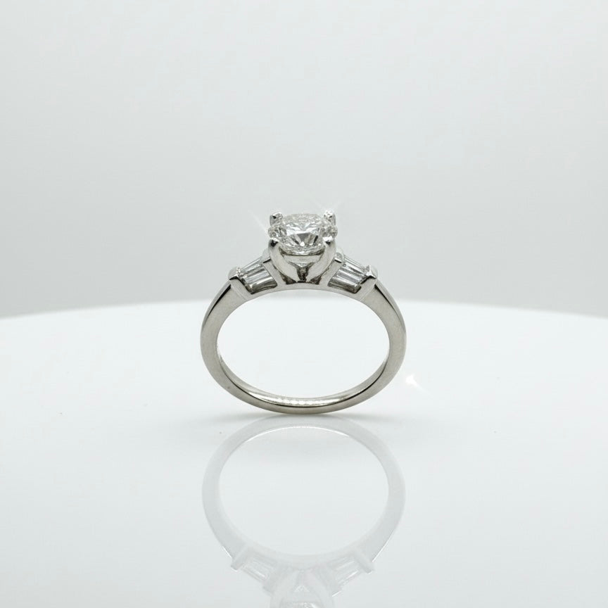 950 Platinum Round Brilliant And Baguette Trilogy Diamond Ring