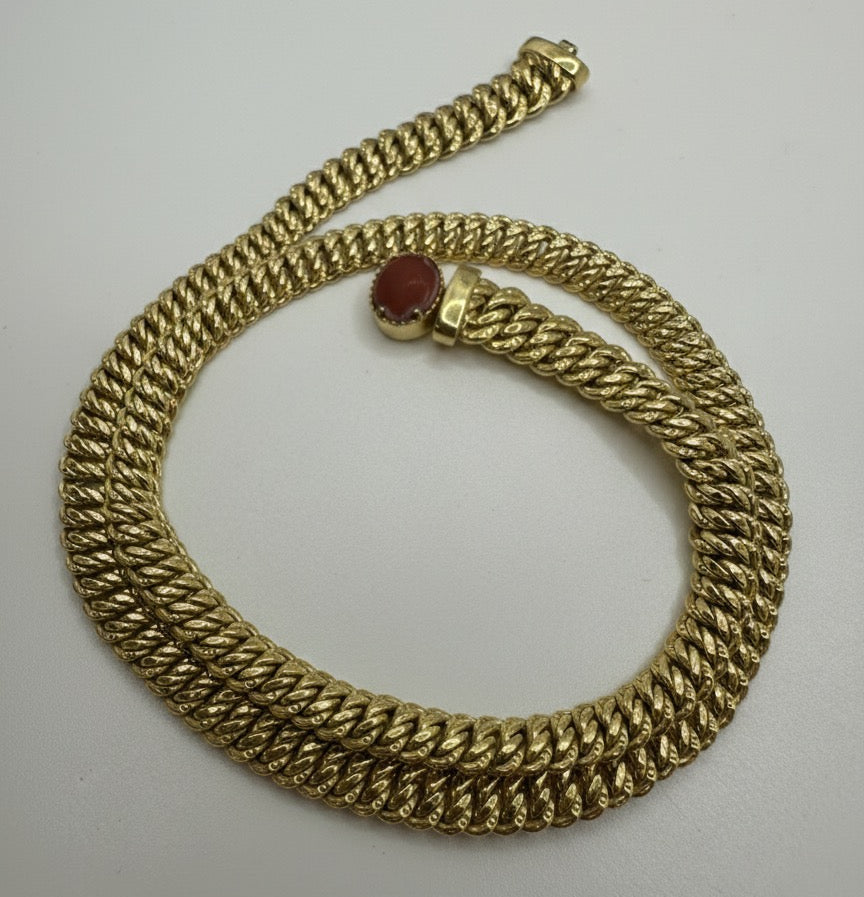 9ct Coral Interlocking Double Cuban With Integrated Pendant Clasp Necklace