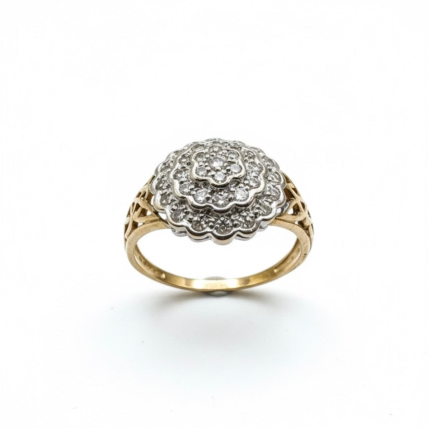9ct Two Tone Triple Layer Floral Diamond Ring